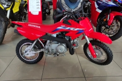 Łatwy start, przyjemna jazda i mnóstwo frajdy. Powszechnie uznawany za oryginalny mini motocykl, CRF50F jest wybierany przez początkujących motocyklistów na całym świecie. Odwrócony widelec, silnik o pojemności 49 cm3, płynnie pracująca skrzynia biegów z automatycznym sprzęgłem, nisko umieszczone siedzenie; wszystko to sprawia, że CRF50F to sama przyjemność. Mocny i solidny, ze stylistyką znaną z większych maszyn i wyścigowymi naklejkami, CRF potrafi dostarczyć o wiele więcej emocji, niż mogłoby się wydawać.